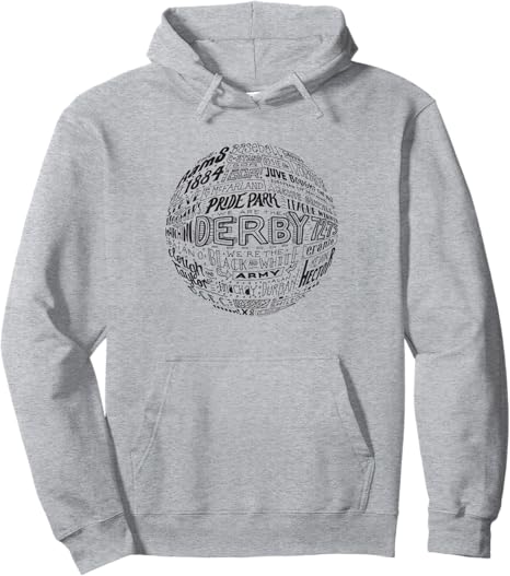 Many of the legendary players and memorable moments that have shaped the history of Derby County FC are featured on this typographical pullover hoodie designed by Michael Wiley, of Sketchbook Design.
